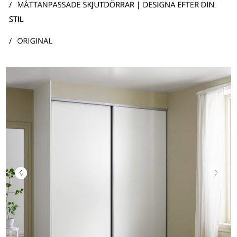 Skjutdörrar med spegelglas, perfekta för att skapa en rymlig känsla i rummet. Dörrarna är designade för att passa de flesta garderobssystem och erbjuder en stilren lösning för förvaring. De är enkla att montera och har en smidig glidfunktion. Mått 623 mm x 2350 mm. Två stycken. Säljes i par, skena igår ej.