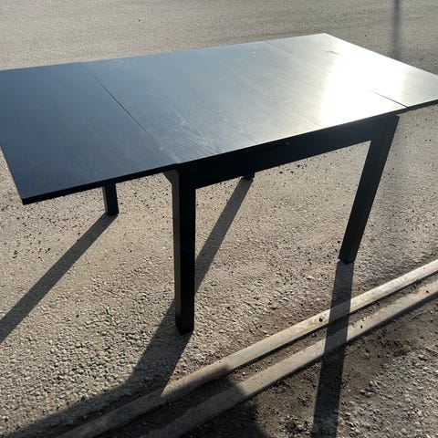 Ett fint bord med iläggsskiva och stolar.
