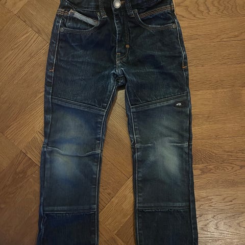 Mjuk och tunn denim. Byxan har raka ben, justerbara hängslen med spännen fram och knappar i sidorna för smidig av- och påtagning. Den har även en bröstficka fram samt två fickor bak. Knapparna i grenen underlättar klädbyten.