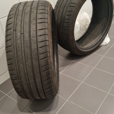 Däcken är i princip i nyskick då de endast rullat några hundra kilometer. De säljes på grund av fel storlek för min bil. Sedan dess har de förvarats i ett förråd. SÄLJER ALLA 4st.
