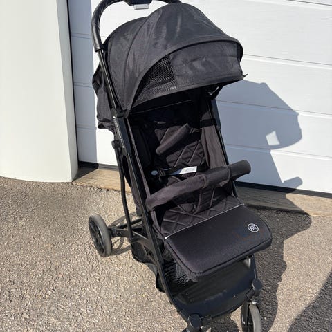 Enligt tillverkaren är B-Lite en liten smidig cityvagn som kan användas redan från nyfödd eftersom den kan kombineras med både mjuklift och babyskydd. Jag skriver under på att vagnen är perfekt för sköna promenader i city och resor med kollektivtrafik eftersom den är lätt, smidig att manövrera och extremt flexibel. Den är även enkel att fälla ihop. Sparsamt använd men repor förekommer.