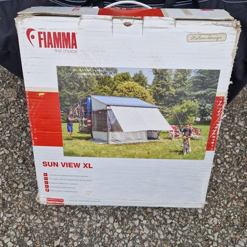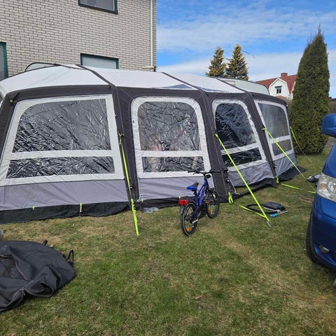 Uppblåsbart förtält till husvagn för snabb och enkel uppsättning. Ej upppackad kartong.