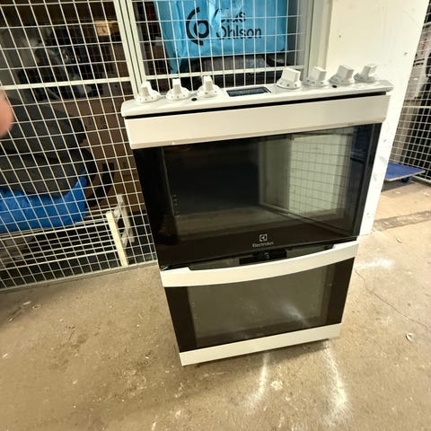 Electrolux glaskeramikspis i vit färg. Spisen har glaskeramikhäll med flera kokzoner och ugn med glaslucka. Ugnsutrymmet är utrustat med ugnsgaller och plåtskenor för olika nivåer.