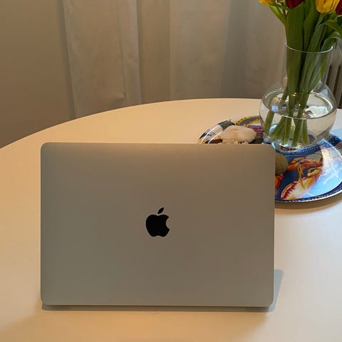 Apple MacBook Air laptop med 13,3-tums skärm, 3år gammal. Datorn är i färgen silver och har Apple M1-chip samt 8 GB minne enligt systeminformationen på bilden. SSD 256GB. 85% batteri hälsa. Det finns några små repor på ovansidan och undersidan. Skärmen och tangentbordet är fortfarande i mycket gott skick.