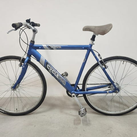 Cykeln har stått utomhus i några år och är inte i det bästa skicket. Ingenting är trasigt men behöver service.