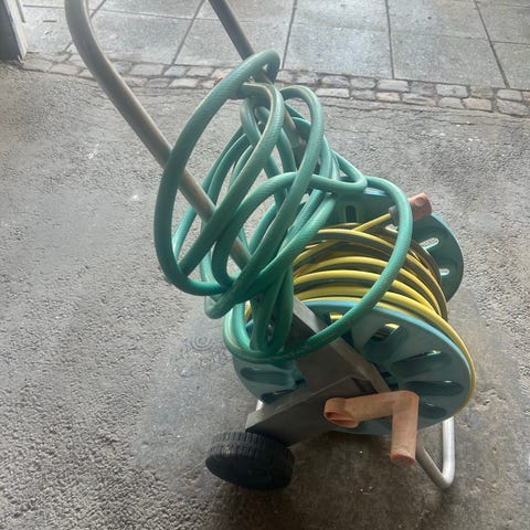 Slangvagn Gardena med trädgårdsslang orange/blå