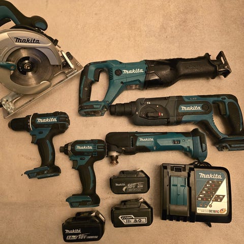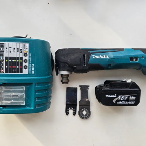 Makita DBO482 excenterslip för 18V batterisystem. Batteridriven slipmaskin i blå och svart plast/metall med rektangulär slipplatta och dammbehållare. Avsedd för slipning av trä, målade ytor och liknande material i hem- och renoveringsarbeten. Batteri och laddare ingår inte om inget annat anges i annonsen.