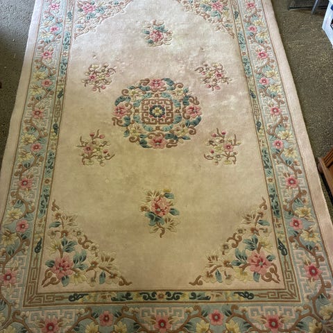 Äkta handknuten matta , vissa delar av fransarna nötta annars är själva mattan fin
