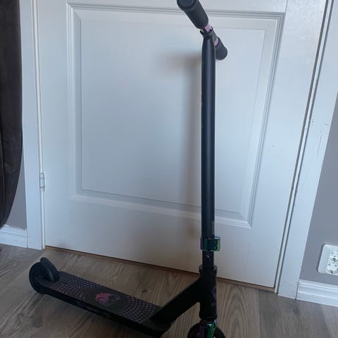 Kickbiken har en rejäl konstruktion och greppvänliga handtag. Design för trick och stunts. Passar för barn och yngre ungdomar. Använd en kort period så något märke finns. Men i gott skick för att ge sig ut på ramp eller vägar. Kostade närmare 2200:- som ny.