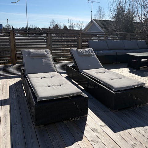 Kuddarna har förvarats inomhus då de inte används och är i bra skick och fräscha. Canvastyget som är spänt på ställningarna är omsytt under hösten 2025 av segelmakare.