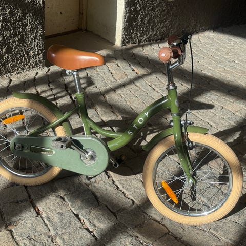 Fin och stabil instegs cykel lämplig som första cykel för barn som passar 16" hjulstorlek.