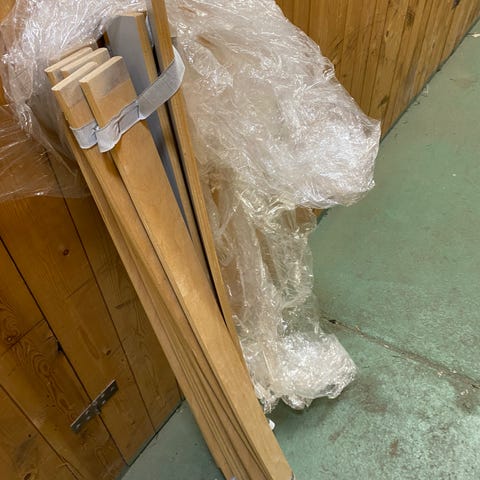 Två trä botten 90x200 har två trådar som håller trä bitarna med en bra avstånd. Pris går att sänkas.