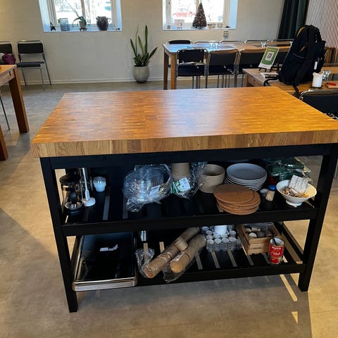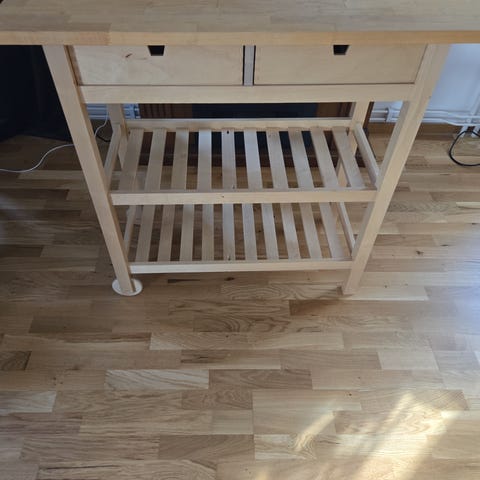 Ett avlastningsbord, perfekt till dig som vill ha lite extra arbetsyta i köket eller varför inte i förrådet! Rymmer även mycket förvaring på båda hyllplanen.