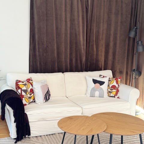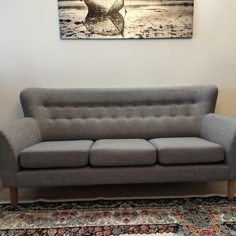 Jag har katt i hemmet, så katten det finns klösmärken på soffan tyvärr, utöver det är soffan i bra skick.