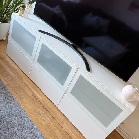 TV-bänk från IKEA (Bestå). Varsamt använd och i fint skick utan synligt slitage på utsidan. Mindre skada finns innanför en av dörrarna.