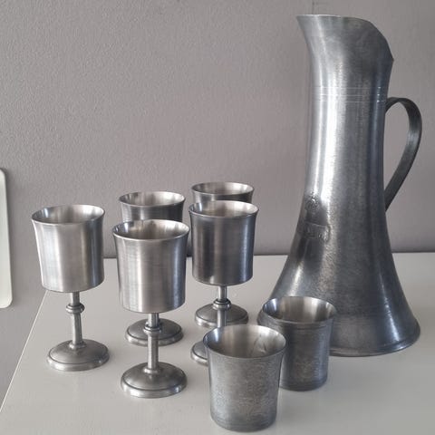 Fina tennföremål, 2 olika vaser en skål 2 nubbeglas 2 små koppar. 300kr för allt
