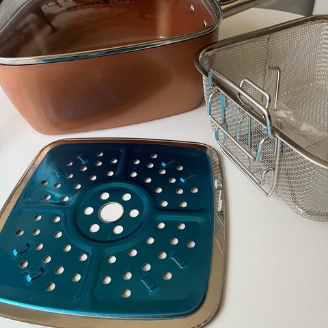Det är de smarta locken som verkligen utmärker detta set. De silikonkantade glaslocken har en integrerad silfunktion med två olika storlekar, vilket gör att du enkelt kan hälla av pastavatten eller buljong direkt från grytan. En annan praktisk detalj är att du kan haka fast locket på kanten av grytan under matlagningen, så slipper du kladd och kondens på köksbänken. Handtagen är klädda med ett mjukt silikon som förblir svalt för en säker och bekväm hantering. Hela setet tål maskindisk.
