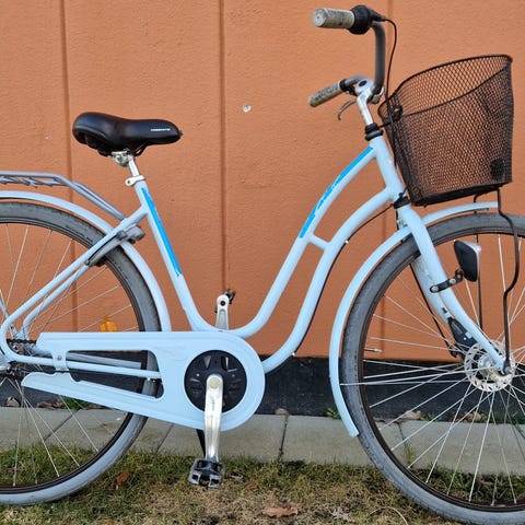 Ghost cykel för unisex med 28" hjul. Cykeln har en lätt ram med lågt insteg, raka styren och dämpad framgaffel. Utrustad med pakethållare bak, skärmar och reflexer på hjulen. Passar för vardagscykling, pendling och fritidsturer på väg och lättare grusvägar.