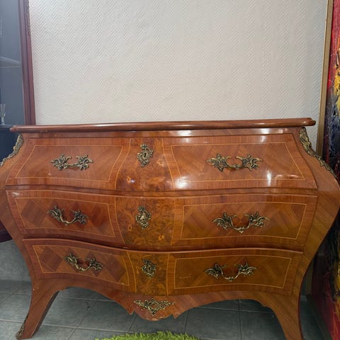 Ett fint kinesiskt allmogeskåp med flera mindre lådor och hylla innanför dörrarna.