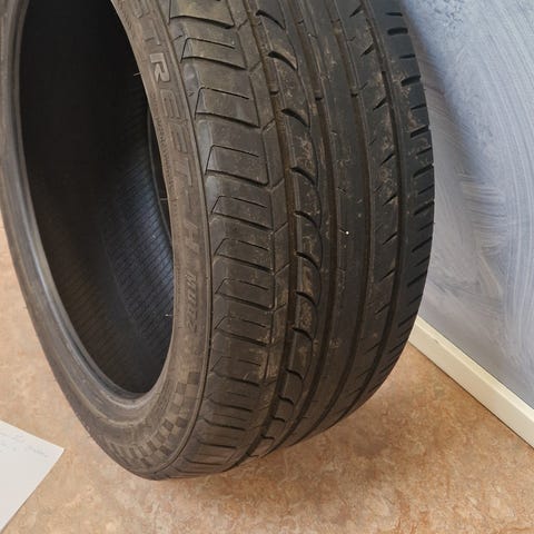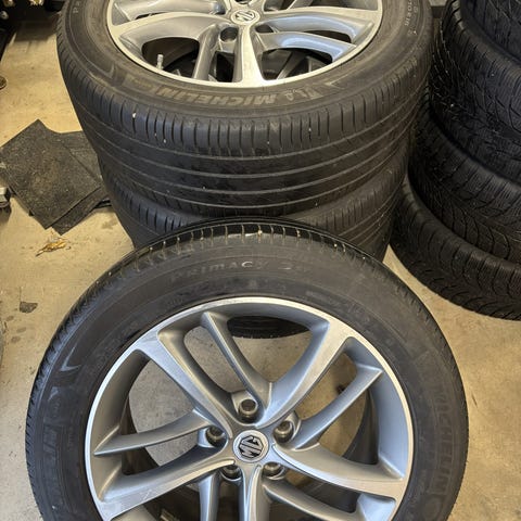 Däcken har minst 5-6mm kvar av mönsterdjupet samt jämt slita. Däcken är från 2023 alltså väldigt fräscha.