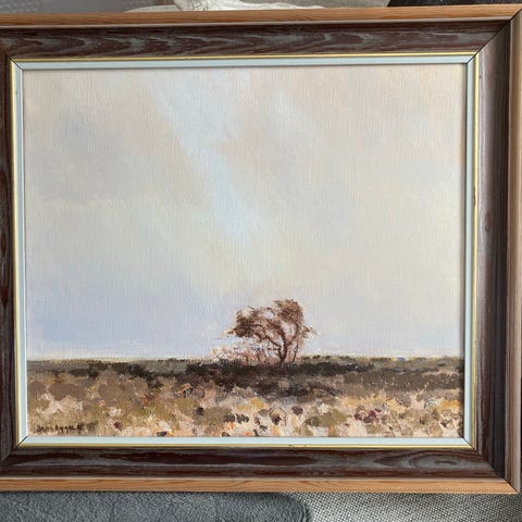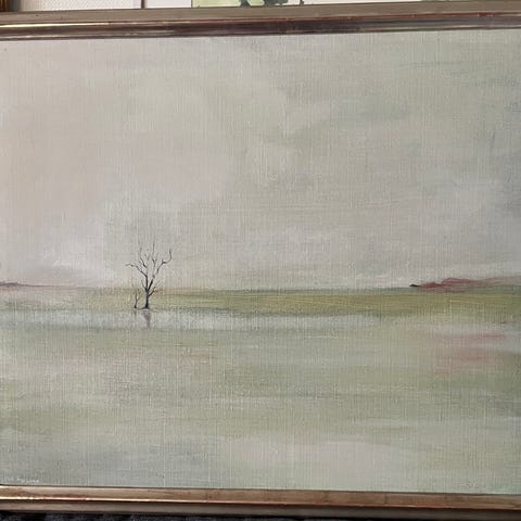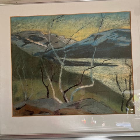 Detta verk är ett fint exempel på Lundhs karakteristiska stil där abstraktion möter natur – ett poetiskt trädmotiv i mjuka toner av grönt, gult och mörka kontraster. Motivet förändras beroende på ljus och ger ett levande intryck i rummet.