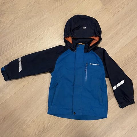 Everest skaljacka i storlek 98/104. Jackan är blå i två nyanser och använd av ett barn. Mycket fint skick!