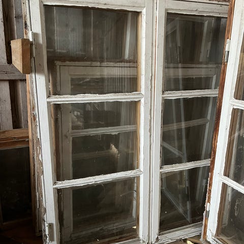 6 st gamla fönster med spröjs och lösa innerbågar. Behov av renovering men god grundkondition.