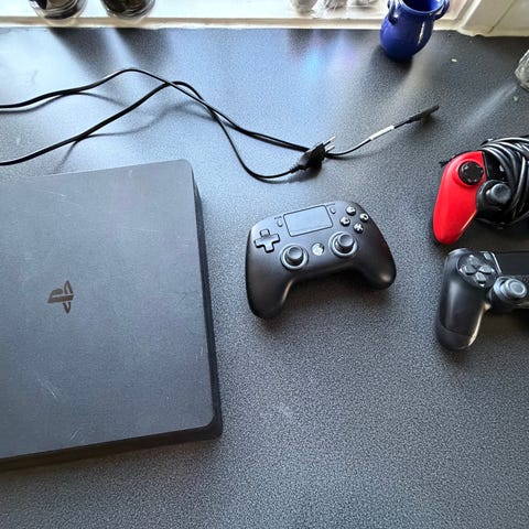 Sony Playstation 4 PRO spelkonsol svart två controllers allt keblin