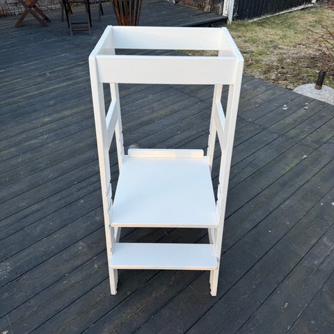 Montessori köksstegspall som enkelt kan förvandlas till bord och stol är designad och skapad för att lära sig, laga mat, klättra, sitta bredvid det stora familjebordet och äta eller bara leka. Och vad är det mest spännande med att den här kökspallen ser ut som en leksak och den kan bli som en vän för ditt barn.