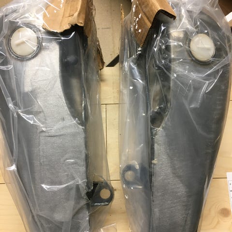 Två ljuddämpare i krom för Triumph Thruxton 900Utförande i metall med blank kromad yta. Avgasrören har rund form med anslutning i ena änden och avfasad öppning i andra. Levereras i kartong med skyddande emballage. Orginal Triumph . Ny pris över 10000kr