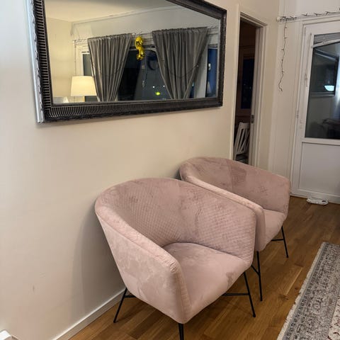 Fåtöljerna är i bra skick, stabila och sköna att sitta i. Klädseln behöver dock tvättas/uppfräschas.