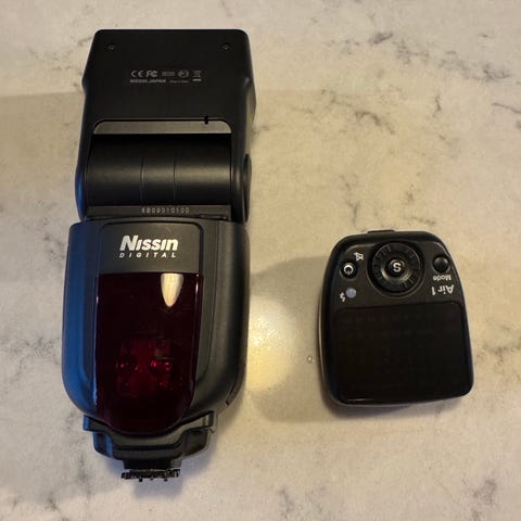 Ledtal: 60 (vid ISO 100, 200mm zoom).Zoom: Automatisk/manuell 24–200mm.Radiostyrning: Inbyggd mottagare för Nissin Air System (NAS).Display: Tydlig färgskärm på baksidan för enkel navigering.Strömkälla: 4 st AA-batterier (ingår ej).Skick & Tillbehör: Blixten fungerar felfritt och är i mycket fint kosmetiskt skick.