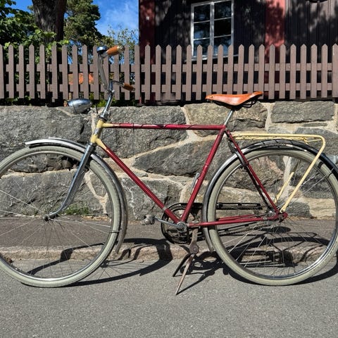 Framhjulet är lite skevt men den funkar att cykla på. Ev har vi ett annat du kan få med