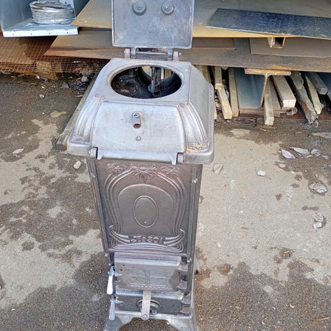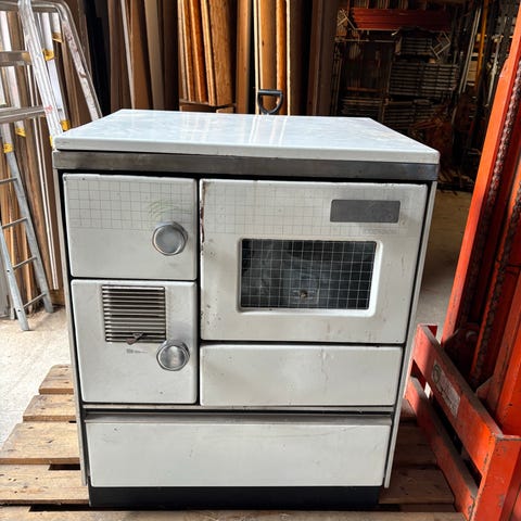 Vedkamin fristående blå med glaslucka