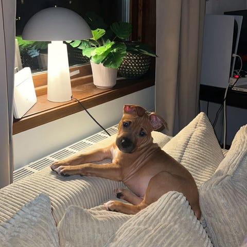 Han är en levnadsglad och lättsam 4 år gammal pitbullhane som älskar mys i soffan och uppskattar långa promenader och solsken mer än hård fysisk aktivitet, men såklart ska nya familjen kunna stimulera honom både fysiskt och mentalt på en för honom lagom nivå så han fortsätter vara sitt levnadsglada jag.