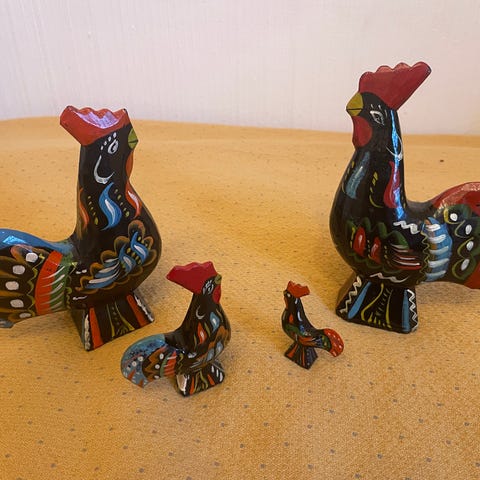 3 st påsktuppar ifrån Portugal den största med höjd 20 cm. Så fina och charmiga. Retro! Sö fint till påsk! Handmålade. Säljes tillsammans för endast 250 kr.