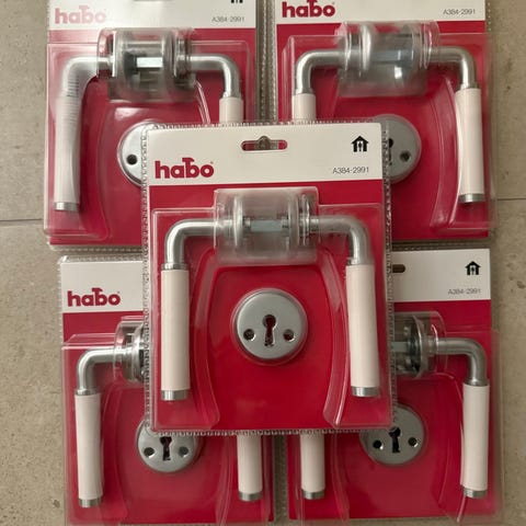 Habo beslag i metall. Produkten levereras i originalförpackning och består av runda beslag som kan användas för montering av exempelvis klädstång till hatthylla. Metallutförande med skruvhål för fastsättning.