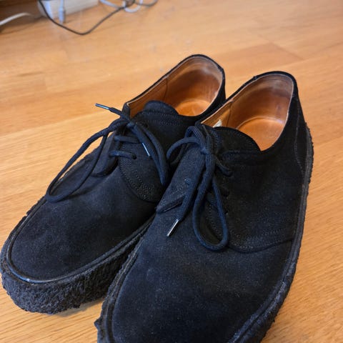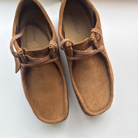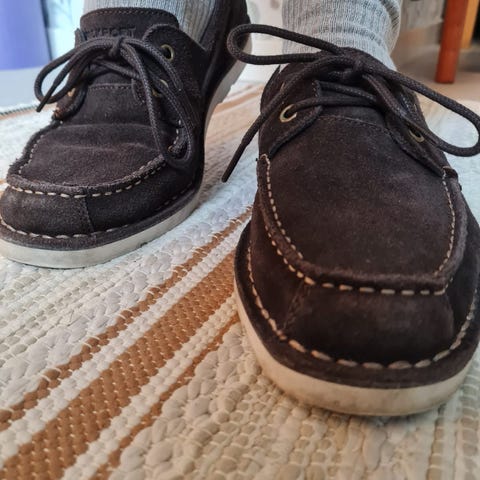 Clarks loafers herrskor i storlek 43. Skorna är svarta och har ovandel i mockaliknande material med snörning framtill. Yttersulan är platt och ger ett stabilt steg. Passar som vardagsskor eller för mer avslappnade tillfällen där en enkel och neutral sko önskas. De är använda några gånger.