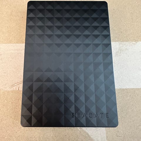 En Seagate Desktop Drive 8TB som införskaffades i december 2025 men fort blev för liten för mitt ändamål så att jag fick införskaffa en större.