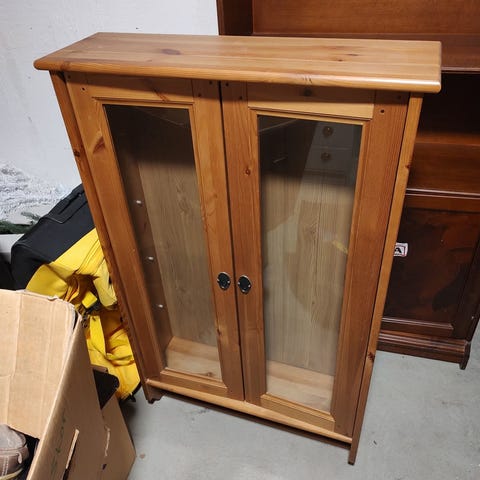 Ett trevligt skåp i massiv ek med 5 hyllplan i glas.
