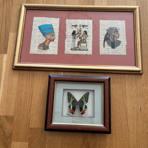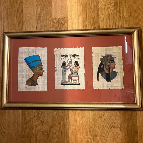 Äldre signerad inramad papyrus från Egypten