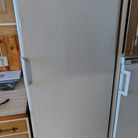 Husqvarna kombiskåp kyl och frys i vit färg. Skåpet har överdel med kyl och underdel med frys, båda med separata dörrar och handtag på fronten. Mekanisk temperaturreglering med vred upptill på kylens front. Passar för förvaring av kyl- och frysvaror i kök. Höjd 179cm, bredd 59 cm.
