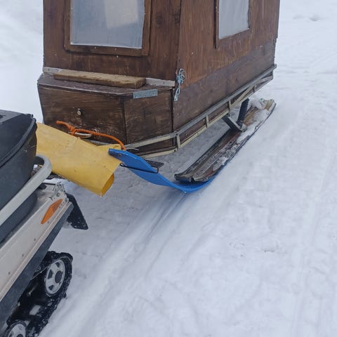 240*240cm. Hopvikbart OSB golv+underlägg .Kälke och värmare Toyoset medföljer. Ring för mer information 0702981045, hämtas i Torneträsk.