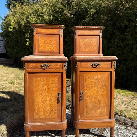 Sängbord trä med marmorskiva vit / POTTSKÅP från tidigt 1900-tal