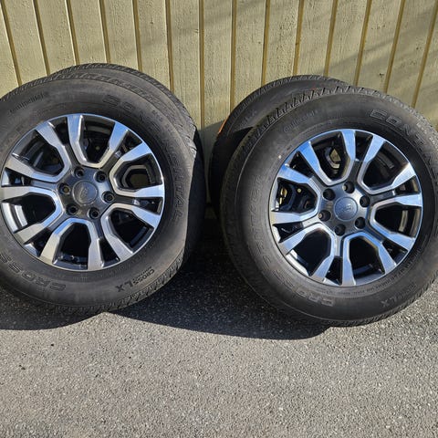 Till salu komplett uppsättning däck och fälg 265/65-R17" Tum Sommardäck Nokian Hakkablue 3. Har suttit på en Ford Ranger men passar även flera märken och modeller. Däcken är i mycket bra skick och tillverkade vecka 10 / 2025.