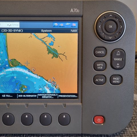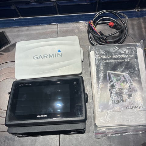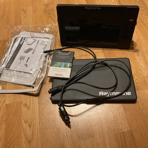 Raymarine a95 med solskydd och kablage. Vi har använt den vid kartbordet i segelbåten. Fungera som den ska.