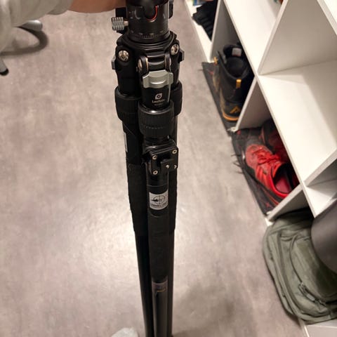 Stativ: Manfrotto MT055BDWAL (aluminium). Nypris ca 3 000 kr.