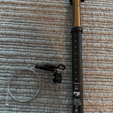 OneUp Components V2 dropper post, längd 240 mm och diameter 31,6 mm. Sadelstolpen levereras med extern vajer och fjärrreglage enligt bild.