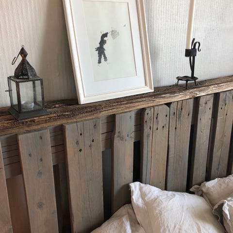 Gammal stor arbetsbänk i trä, vintage, antik med tecken på slitage, shabby chic.