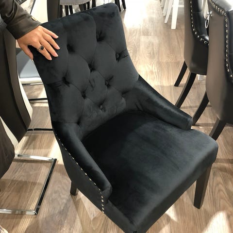 Säljer eleganta Felipe stolar i svart sammet med ben i mässing.